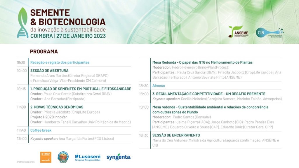 EVENTO SEMENTE & BIOTECNOLOGIA em COIMBRA | 27 DE JANEIRO 2023
